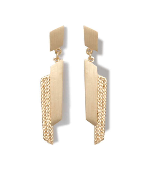 Kolczyki w kształcie wachlarzy z trzech trójkątów o różnej fakturze
