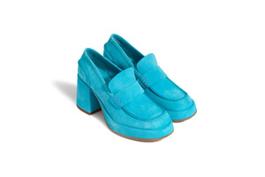 Turkusowe mokasyny na obcasie