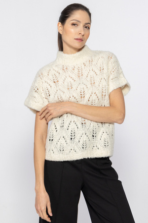 Czarny golf z krótkim rękawem z połyskującą nitką