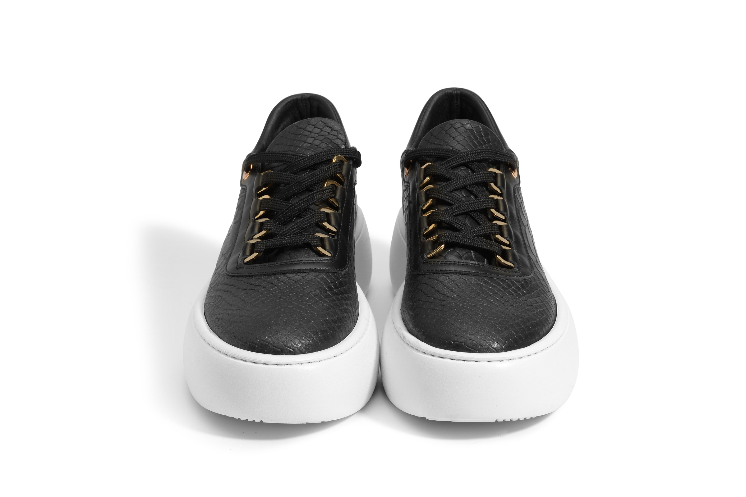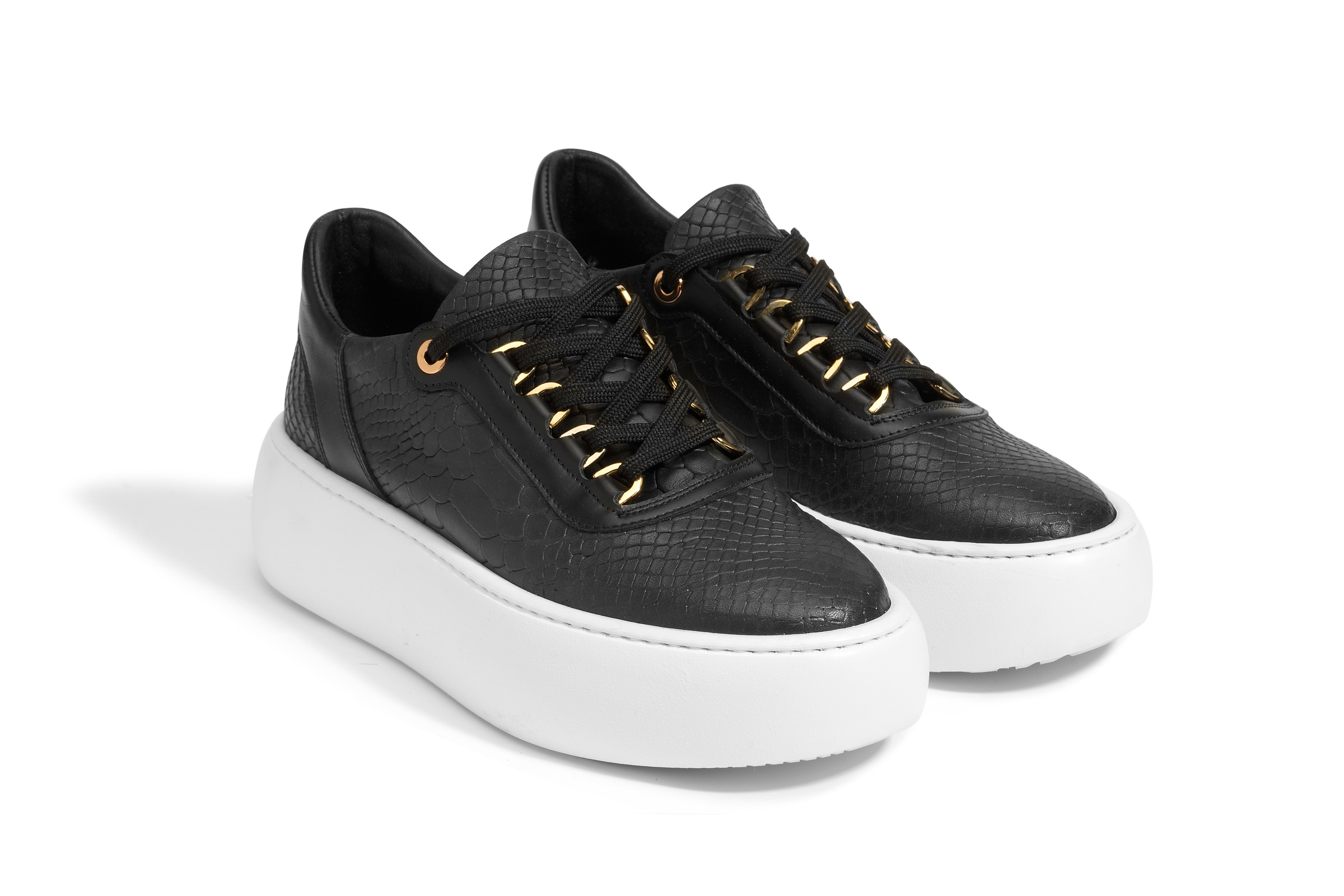 Złota „biżuteria" umieszczona w miejscu oczek na sznurowadła nadaje im subtelnej elegancji, podkreślając Twój indywidualny styl. Niezależnie od tego, czy stawiasz na casualowe, odważne stylizacje, czy bardziej luksusowo-nowoczesne kompozycje, te buty stanowią idealne uzupełnienie każdego looku.