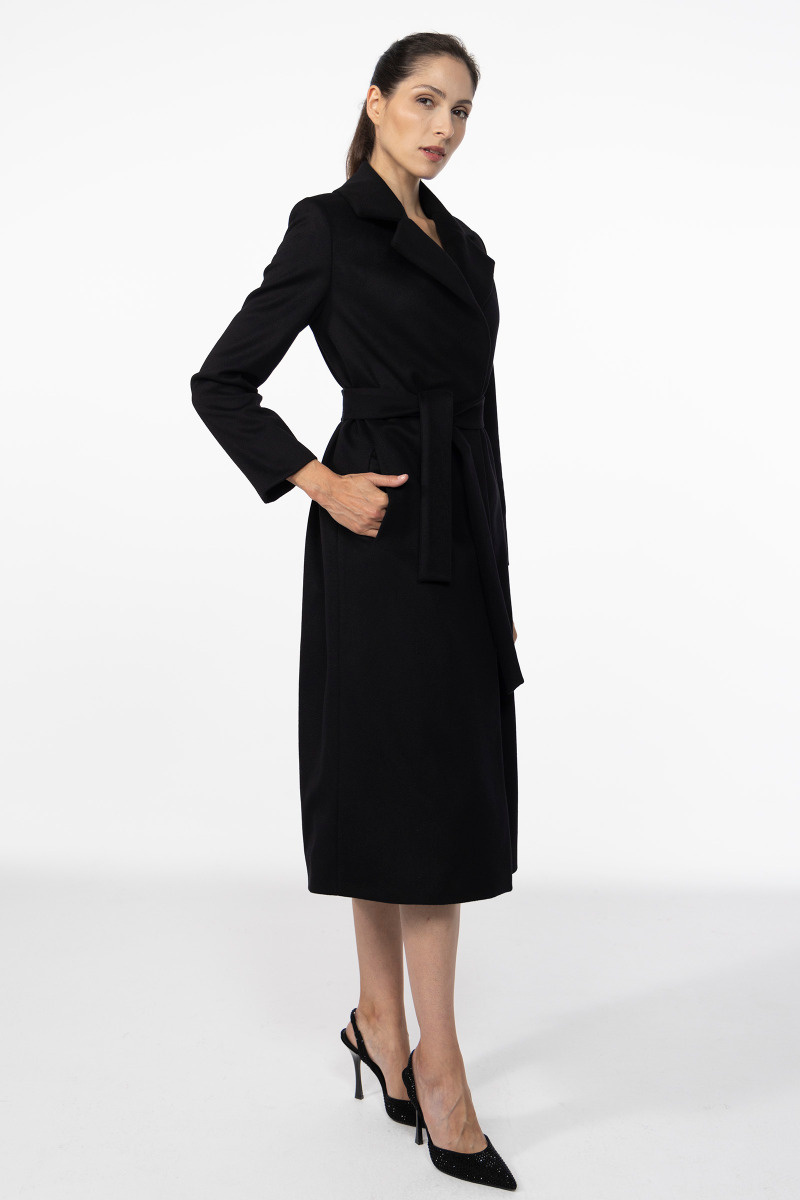 Ten czarny klasyczny płaszcz to niezastąpiony element Twojej garderoby, który definiuje nowe standardy stylu. Świetny jako nakrycie do biznesowych garniturów lub eleganckich kreacji wieczornych.